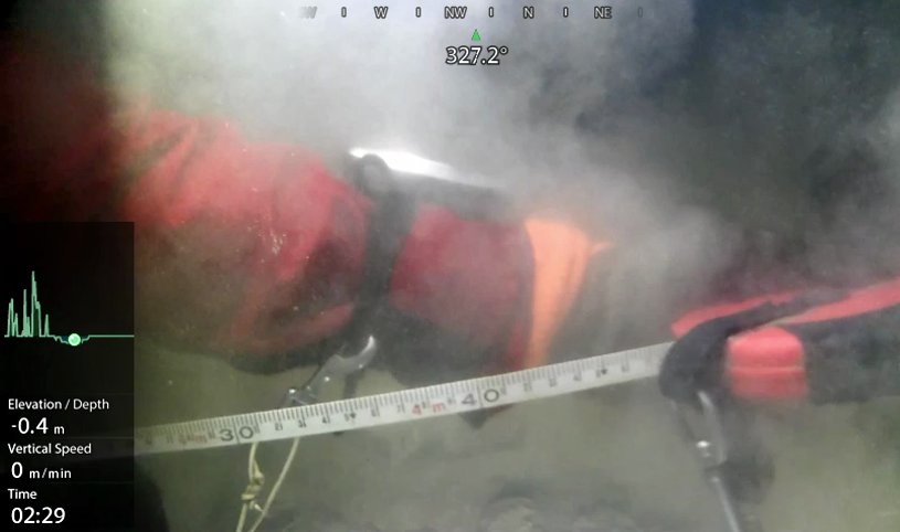 Die Überraschung bezüglich der Vermessungsqualität beruht auf den problematischen Vermessungsbedingungen. Im Bachgang, bei einer Deckenhöhe (über Wasser) von oft nur 30-40cm, ist eine Präzisionsvermessung schwierig. Auf den Tauchstrecken, bei Sichtweiten von weniger als 1m, wird es noch schlechter. Die eingesetzten Messinstrumente müssen komplett wasserdicht sein. Verwendet wurden elektronische Tauchcomputer und ActionCams mit integriertem Kompass. Die Messqualität der eingesetzten Geräte ist normalerweise eher für die grobe Orientierung gedacht.