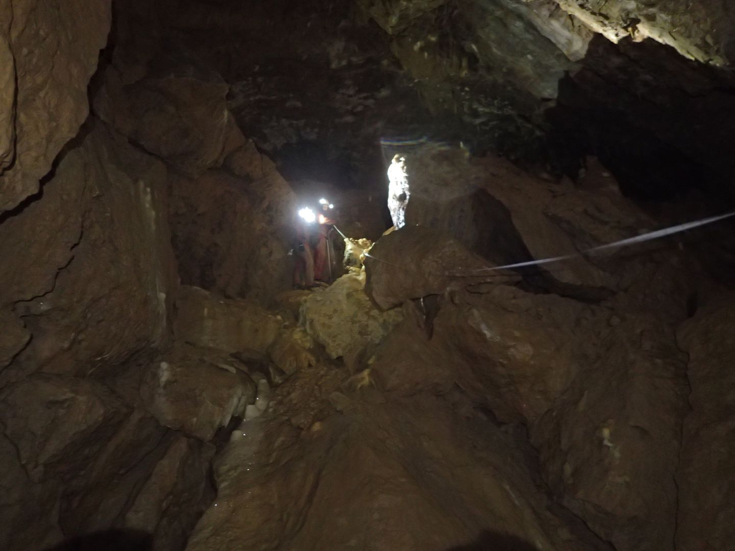 Das Oberflächenteam versucht parallel zu diesen Arbeiten einen trockenen Eingang in die höher liegenden Bereiche zu finden. In der näheren Umgebung gibt es einige kleine Höhlen und ein paar vielversprechende geologische Formationen. Die Suche blieb bisher leider ohne Erfolg.