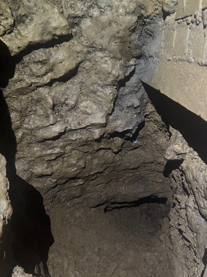 Gut zehn Eimer wären noch nötig gewesen um in den neuen Gang einzudringen, allerdings war durch das Abteufen der Grabung die instabile Erdfallverfüllsäule wieder gut 1,5 m hoch.