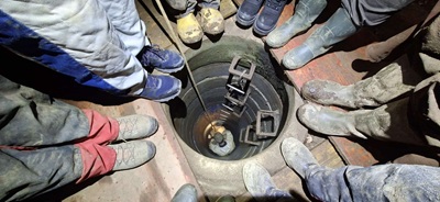 Schon bald zeigte sich ein faustgroßes Loch dem heftiger Luftzug entströmte der oben am Schachtkopf deutlich als Nebel zu erkennen war.